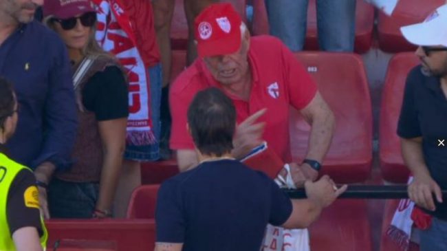 Al finalizar el choque, se ha podido ver una curiosa imagen por televisión, en la que un seguidor rojiblanco echaba la bronca al técnico, Matías Almeyda, haciéndole indicaciones sobre lo ocurrido sobre el campo.