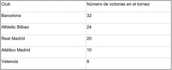 La historia de la Copa de España está llena de partidos emocionantes y victorias increíbles de auténticas leyendas. Los principales participantes siguen siendo tres clubes: el Barcelona, el Athletic de Bilbao y el Real Madrid. Veamos cuántas veces han ganado estos populares clubes de fútbol en una práctica tabla.