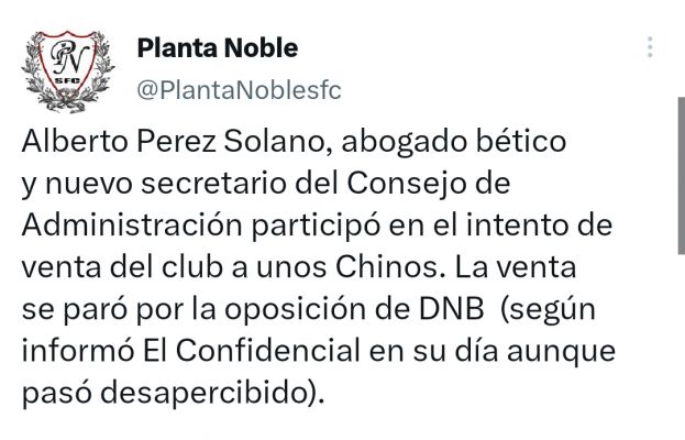 Hemos podido conocer a través de ‘Planta Noble SFC’ que la persona mencionada con anterioridad, intentó vender el club a un grupo chino en 2017, una operación que no cuajó ya que fue frenada por José María del Nido: “Me tienen que matar 6.000 chinos seguidos para que yo venda. Antes se lo regalo a los sevillistas”, comentó en su día.