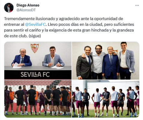 «Tremendamente ilusionado y agradecido ante la oportunidad de entrenar al Sevilla FC. Llevo pocos días en la ciudad, pero suficientes para sentir el cariño y la exigencia de esta gran hinchada y la grandeza de este club.
