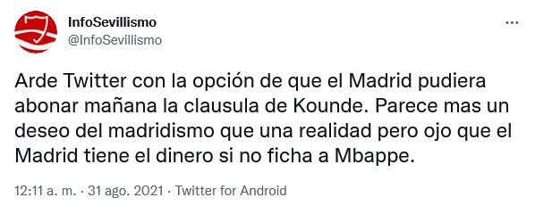 Hay un extraño run run en redes sociales con la posibilidad de que el Madrid pague la cláusula de Koundé con el dinero que no ha empleado en el fichaje de Mbappé. Veremos que pasa…