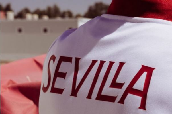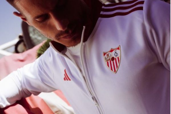 Este domingo podremos ver la sudadera blanca con cremallera y detalles rojos en los hombros, con el escudo del Sevilla FC en rojo y blanco sobre el pecho.