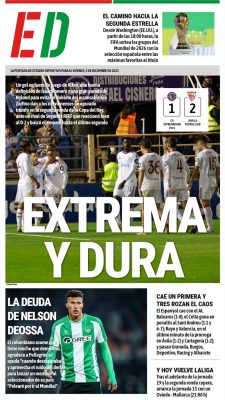 En este viernes, la primera página del rotativo está dedicada al pase a dieciseisavos de final de Copa del Rey, por parte del conjunto sevillista.