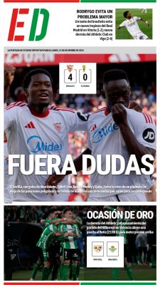 Como cada mañana, os dejamos con la portada del diario de deportes sevillano, Estadio Deportivo.