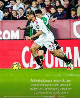 Ante las críticas recibidas por la acción, el primero del propio Matías Almeyda, el delantero ha querido mandar un mensaje de disculpa en sus Redes Sociales.