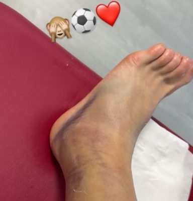 Tras finalizar el partido, quiso compartir en redes sociales el estado de su tobillo, que todavía seguía amoratado, dando fe de que su compromiso y actitud han cambiado por completo.