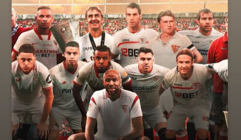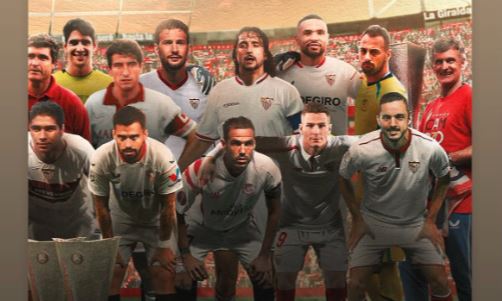 Se trata de una composición de @wissysfc, donde posan miembros destacados de estos años en el conjunto sevillista, desde jugadores a técnicos.