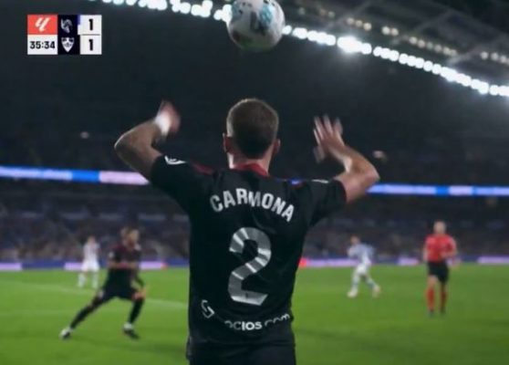 José Ángel Carmona regaló la pelota al rival, aunque su decisión era entregársela a Nemanja Gudelj.