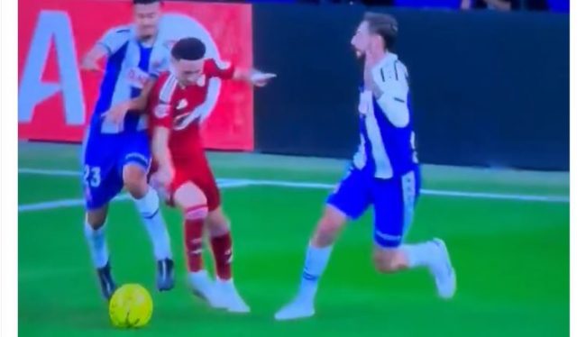 En la primera mitad, una entrada entre dos jugadores españolistas a Rubén Vargas, donde uno de ellos acaba golpeándole con la cadera a la altura del muslo, desestabilizándolo en carrera, no fue considerada como pena máxima.