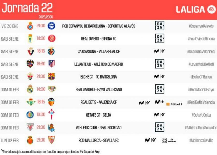 El último se acaba de conocer y hará que el conjunto de Matías Almeyda se enfrente al Real Mallorca en Palma el lunes 2 de febrero, en el encuentro correspondiente a la jornada 22.