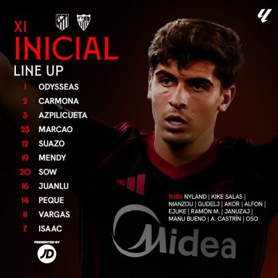 El once con el que saltará Matías Almeyda de inicio estará formado por Odysseas – Carmona, Azpilicueta, Marcao, Suazo – Mendy, Sow – Juanlu, Peque, Vargas – Isaac.