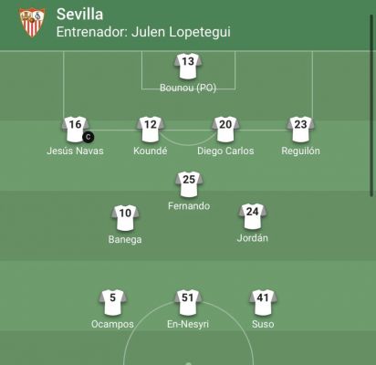 Bono, Navas, Koundé, Diego Carlos, Reguilón, Fernando, Banega, Jordán, Ocampos, Suso, En-Nesyri