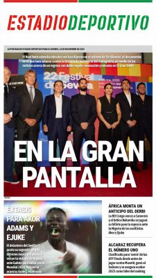 En este viernes, la sección sevillista de la primera página del rotativo, está dedicada al triunfo de Nigeria para la clasificación del Mundial, con participación activa de los jugadores del Sevilla FC, Akor Adams y Chidera Ejuke.