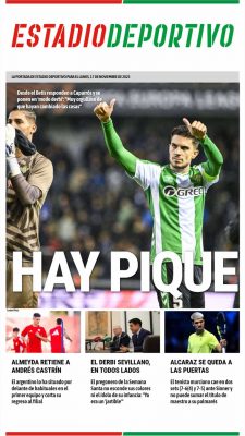 En este lunes, la primera página del rotativo está dedicada al pique entre béticos y sevillistas, a dos semanas del derbi.