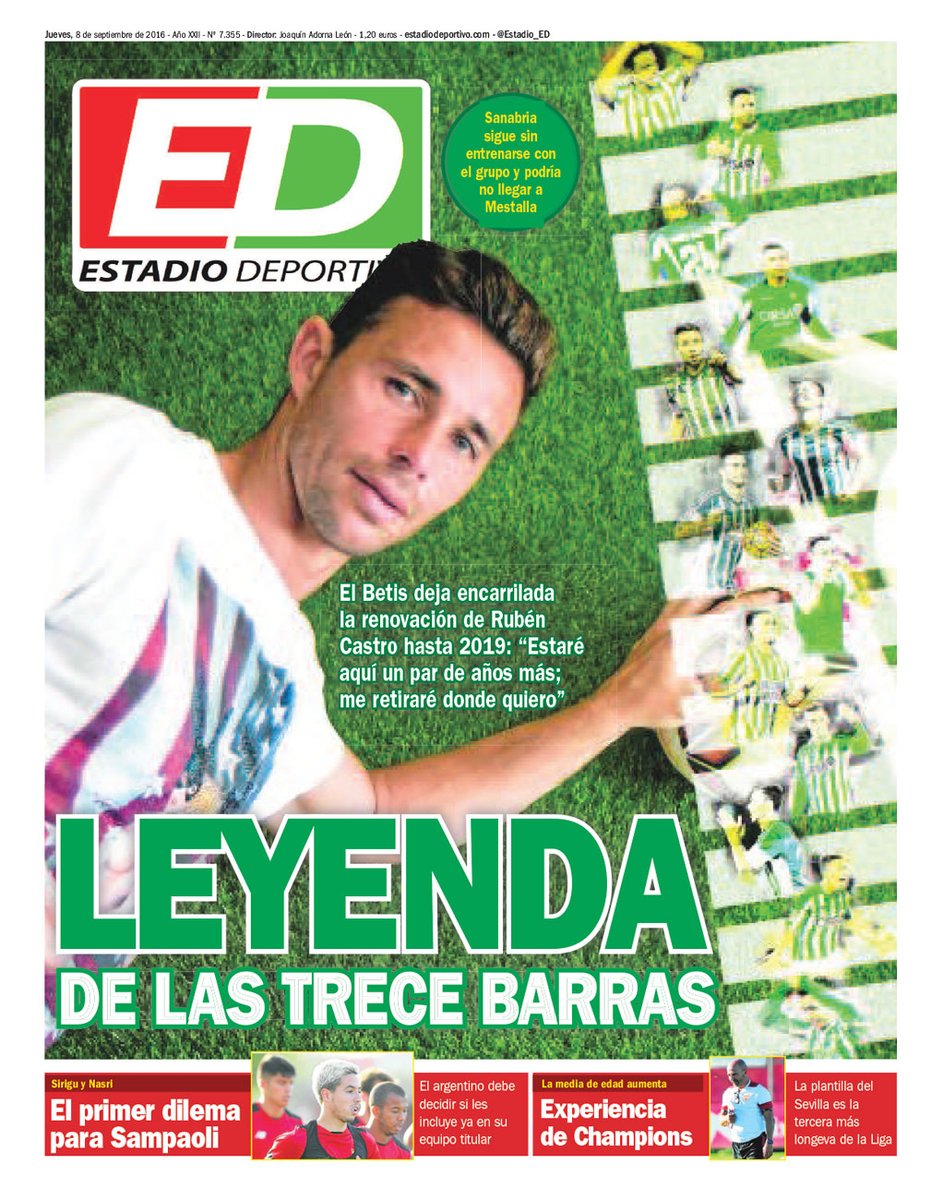 Portada ED – El primer dilema para Sampaoli 8 septiembre, 2016 por EstadioDeportivo Portada ED – El primer dilema para Sampaoli Comparte por Whatsapp esta noticia