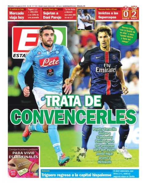 Portada ED – Mercado viaja hoy y sujetan a Parejo 3 agosto, 2016 por EstadioDeportivo Portada ED – Mercado viaja hoy y sujetan a Parejo Comparte por Whatsapp esta noticia