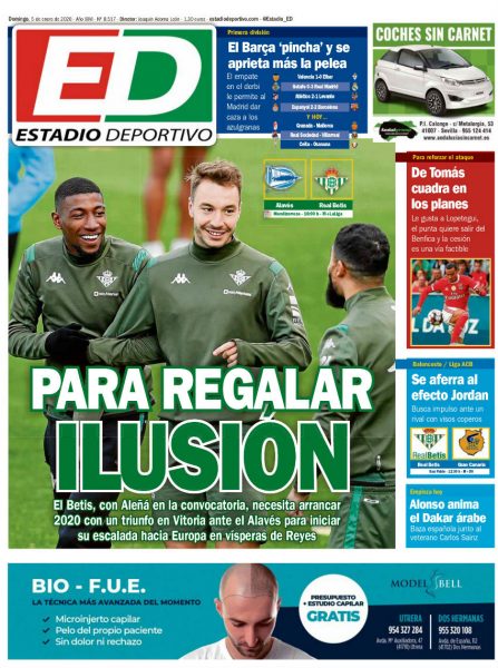 Portada ED – De Tomás cuadra en los planes 5 enero, 2020 por EstadioDeportivo DE TOMÁS CUADRA EN LOS PLANES: Le gusta a Lopetegui, el punta quiere salir del Benfica y la cesión es una vía factible. Comparte por Whatsapp esta noticia