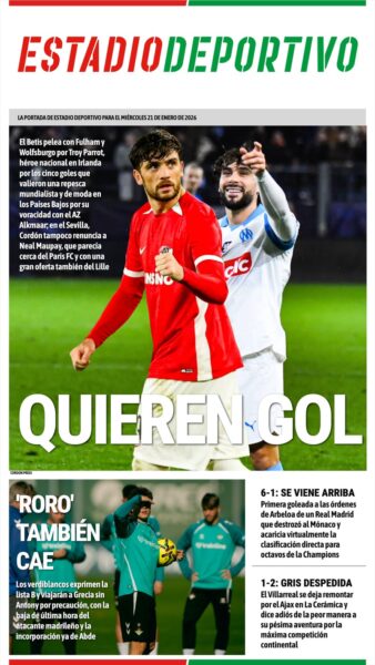 En este miércoles, la primera página del rotativo está dedicada a las opciones de Sevilla y Betis por contratar un delantero en este mercado invernal.