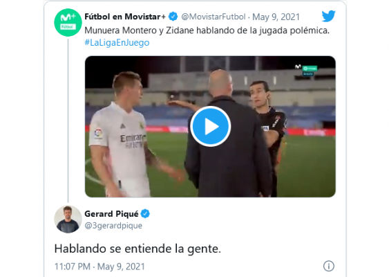 – El tuit de Piqué envenenado (El Desmarque): Gerard Piqué, capitán del Barcelona, no ha tardado en mandar un mensaje envenenado por las redes sociales. «Hablando se entiende la gente», sobre las imágenes de Zidane conversando con el árbitro.
