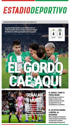 Como cada mañana, os dejamos con la portada del diario de deportes sevillano, Estadio Deportivo.