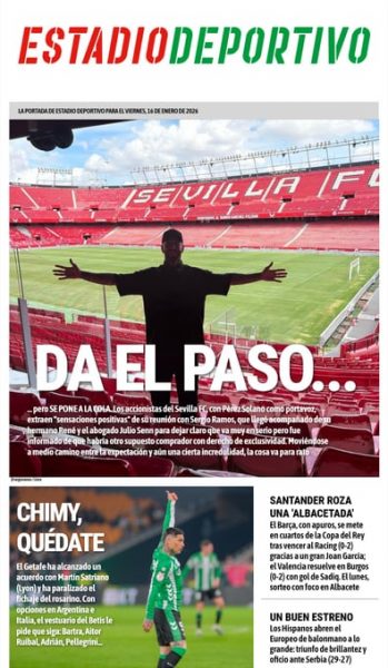 Como cada mañana, os dejamos con la portada del diario de deportes sevillano, Estadio Deportivo.