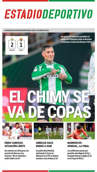 Como cada mañana, os dejamos con la portada del diario de deportes sevillano, Estadio Deportivo.