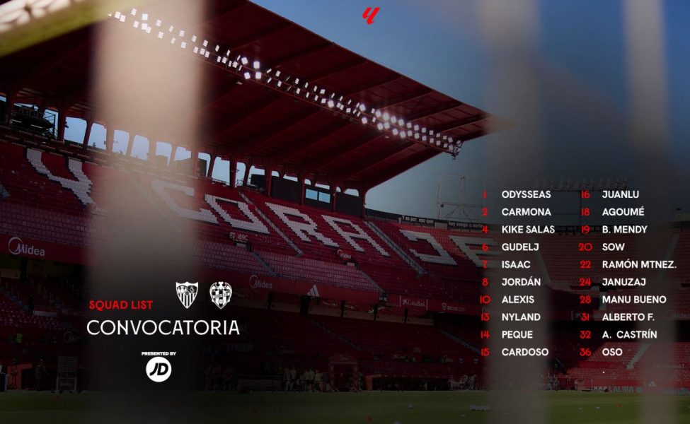 El Sevilla FC ha dado a conocer la lista de jugadores que se concentrarán para disputar este domingo el primer partido del 2026 ante el Levante UD.
