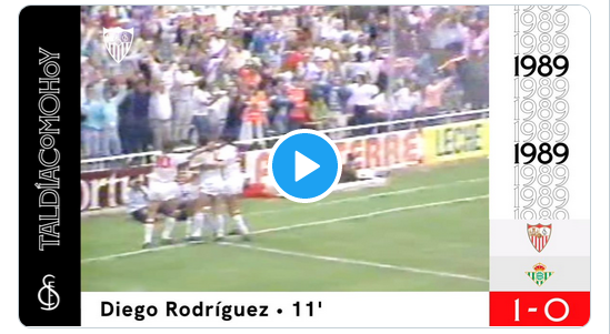 📆 #TalDíaComoHoy, en 1⃣9⃣8⃣9⃣, se disputaba #ElGranDerbi. Diego acababa de firmar su traspaso del eterno rival al #SevillaFC y en el partido, de máxima rivalidad, hacía el gol de la victoria para los locales 😉🔝